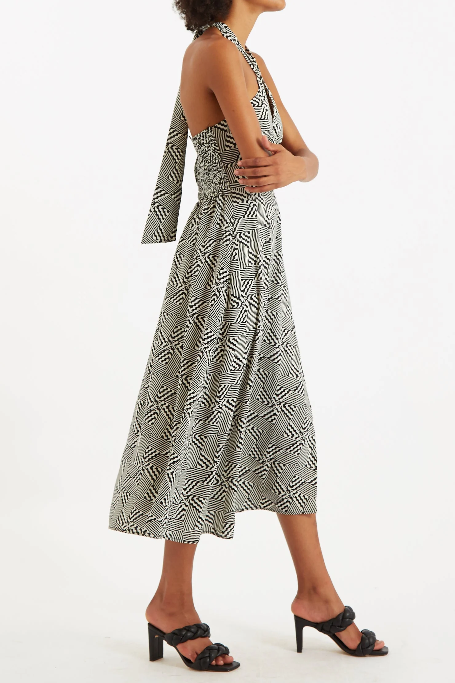 Geri 60s Patchwork Tie Neck Halter Midi Dress