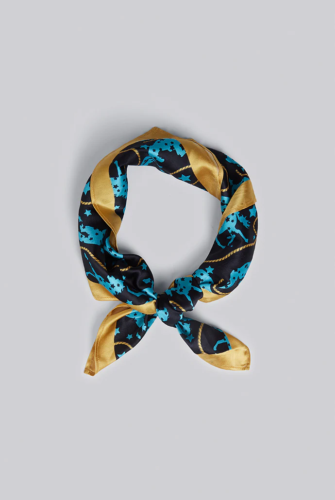 Match your prints, clash your prints. When it comes to Louche scarves, you can't go wrong. Wear it as a necktie, hair accessory, bracelet or to dress up your go to bag.
